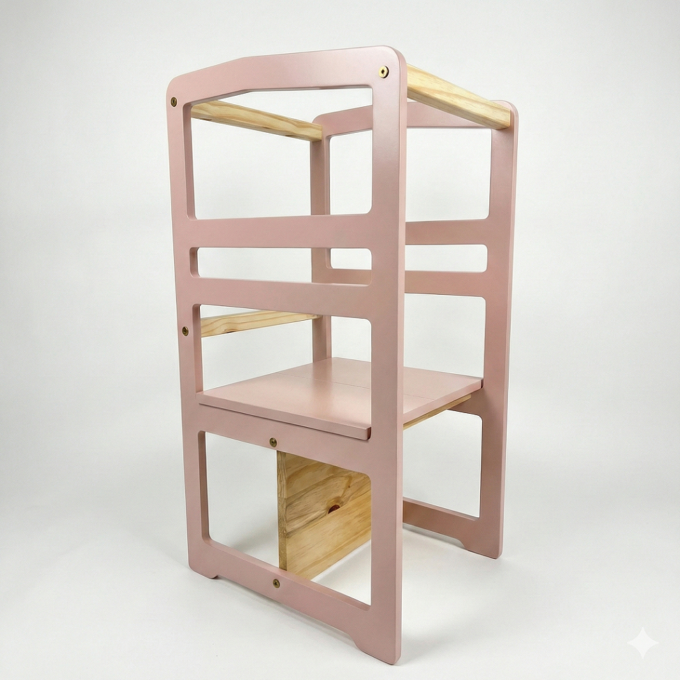 Torre de Aprendizagem Montessori Spraiado laqueada ROSA! A Torre de Aprendizagem Montessori Spraiado foi desenvolvida para estimular a autonomia, a independência e o desenvolvimento infantil de forma segura e funcional. Inspirada na pedagogia Montessori, ela permite que a criança participe das atividades do dia a dia na altura correta, favorecendo o aprendizado natural, a coordenação motora e a confiança desde cedo. Destaques do Produto ✔ Estimula autonomia e independência ✔ Design Montessori funcional ✔ Estrutura estável e segura ✔ Ideal para cozinha e rotina diária ✔ Acompanha o crescimento da criança Funções e Benefícios • Permite que a criança participe das atividades do dia a dia • Ajuda a desenvolver coordenação motora e equilíbrio • Incentiva a interação familiar • Evita o uso de cadeiras ou apoios improvisados • Uso recomendado sempre com supervisão de um adulto Material e Acabamento • Material: MDF e Madeira Pinus natural • Acabamento: Pintura laca (automotiva) atóxica na cor ROSA • Estrutura resistente para uso diário Dimensões do Produto • Altura: 77 cm • Largura: 38 cm • Comprimento: 40 cm • Suporta até 55 kg O que vem na embalagem • 02 laterais em MDF com pintura laca na cor ROSA • 01 base grande • 01 base em madeira Pinus • 03 travas de segurança em Pinus • 10 parafusos para montagem • 01 chave Allen (grátis) Informações Importantes • Produto enviado desmontado • Montagem simples • Uso infantil com supervisão de adulto • Produto com pintura laca • Imagens meramente ilustrativas • Produto de fabricação semiartesanal, podendo haver pequenas variações